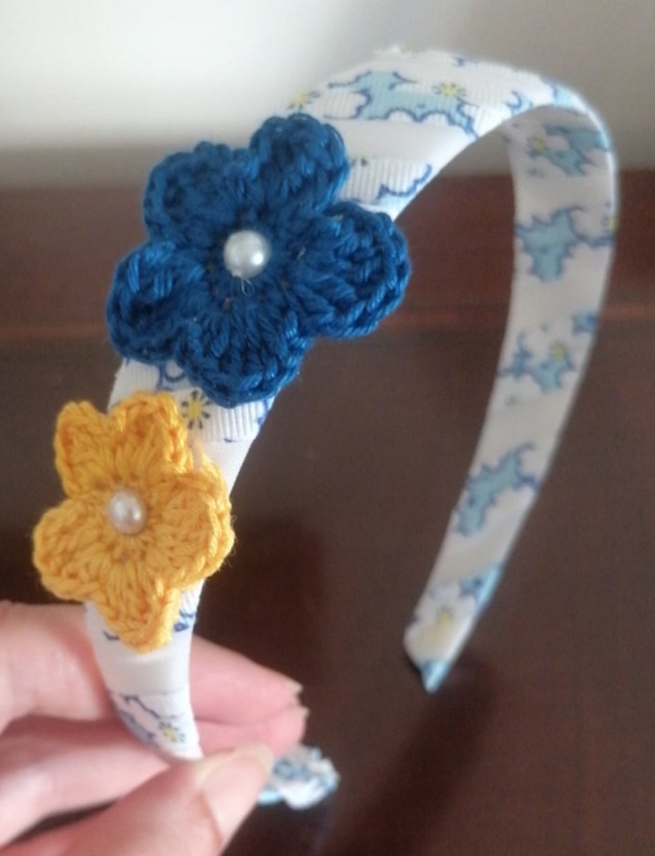 Con applicazioni in cotone, lavorate ad uncinetto